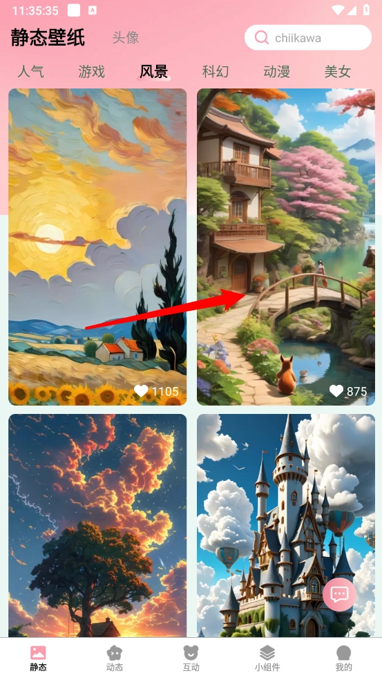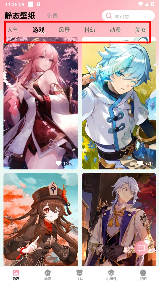 在主页根据上方的分类选择喜欢的壁纸板块。