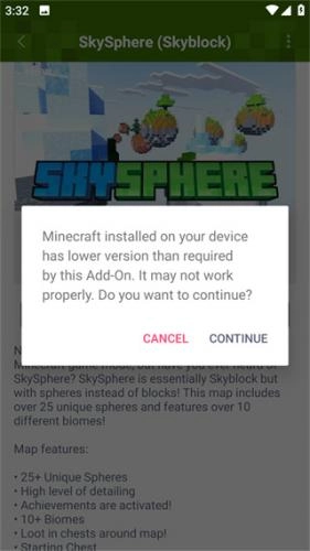 5、在此界面点击CONTINUE,点击完成导入了,随后会自动跳转至我的世界游戏,玩家就可以上线畅玩啦!