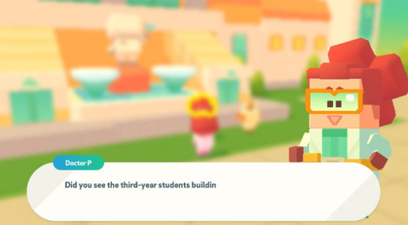 3、完成一个小建筑物之后,可以控制角色进行跑步去doctorp对话,因为此时角色还没有到达地球