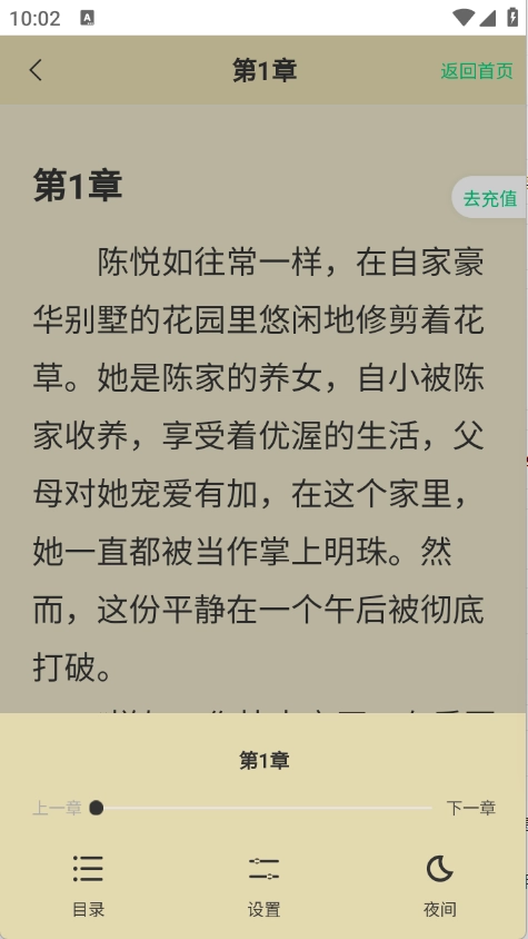 上下滑动屏幕找到并点开自己喜欢的小说资源后,就能进入阅读页面了。
