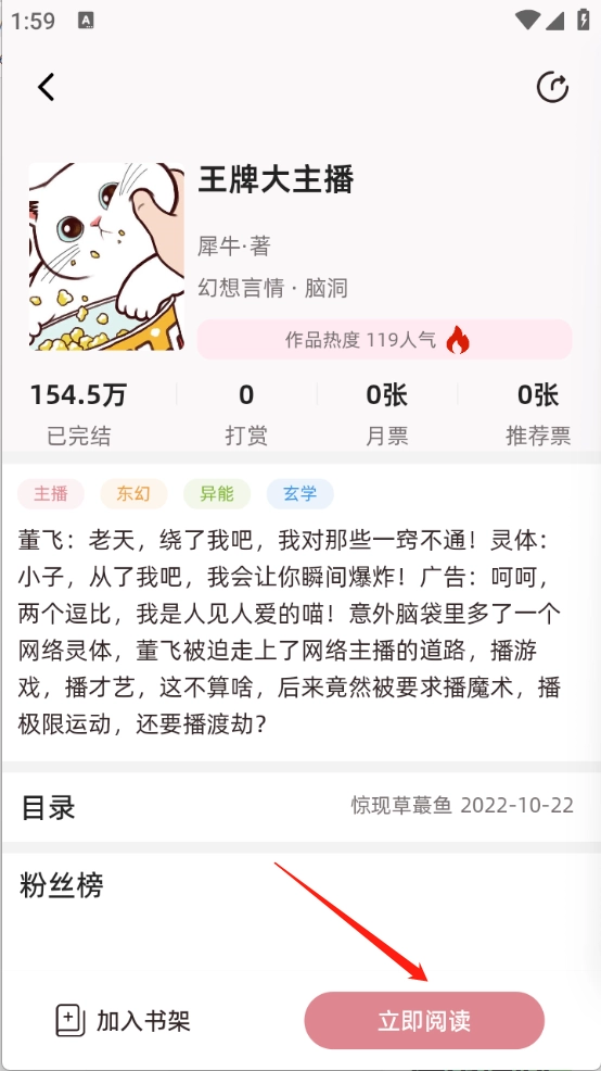 点开喜欢的小说资源以后,点击“立即阅读”。