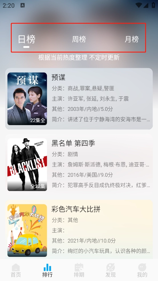 排行榜设有日榜、周榜与月榜,可及时发现并修正热门影视资源。