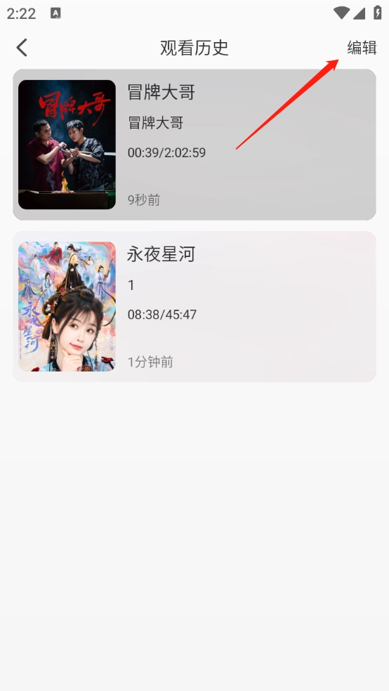 点击右上角的“编辑”,就能看到所有的观看记录了。