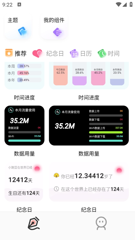用户能够自行DIY编辑各类小组件,让手机桌面更具个性。
