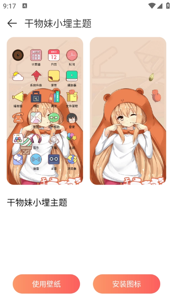 可以选择使用壁纸和安装图标哦。