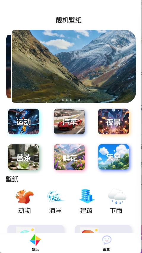 壁纸页面汇聚了丰富多样的壁纸资源,涵盖运动、汽车、天空等多种类型。