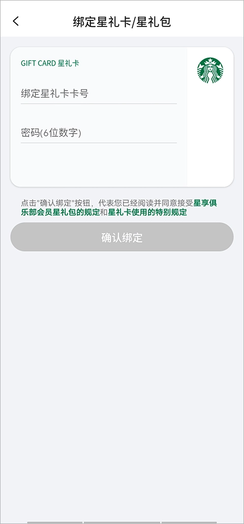 输入星礼卡卡号和密码,点击确认绑定就可以啦。