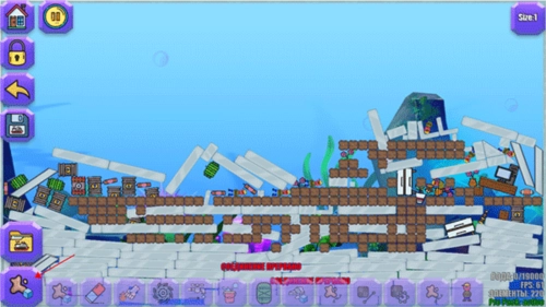 提供多种模式:其一是沙盒模式,你可以像玩粉末游戏一样,建造一堵墙然后向它投掷炸弹;其二是筏生存(运输模式);其三是包含24个预制关卡的模拟模式。