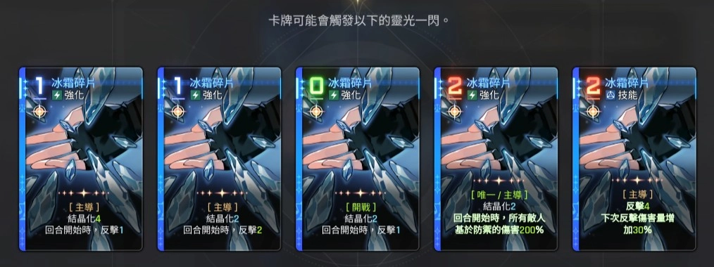 如果大家想组建一支反击队,有个角色推荐大家务必了解——麦格纳。和卡利佩相比,她在实战中更偏向前排定位,释放技能时能借助足够的强化主导效果,再搭配一定的反击卡牌,因此很适合走反击流。她的不少强势卡牌都能触发反击,比如“冰霜碎片”,建议大家低费使用:2费的强化效果很难发挥,而且该技能需要基于所有敌人的防御数值提取伤害才能达到200%,以当前版本的防御力来看,麦格纳容易卡手,所以更推荐大家优先点满她的3个强化技能。