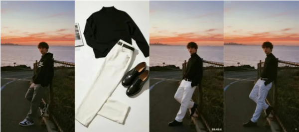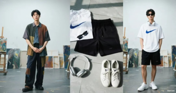 我们又上传了一张照和一张OOTD俯拍平铺图,并输入提示词:Changetheoutfitwiththeuploadedone.