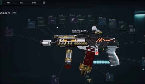 改装思路:通过枪管和AK通火口补足射程(+5米),同时提升初速与稳定性。