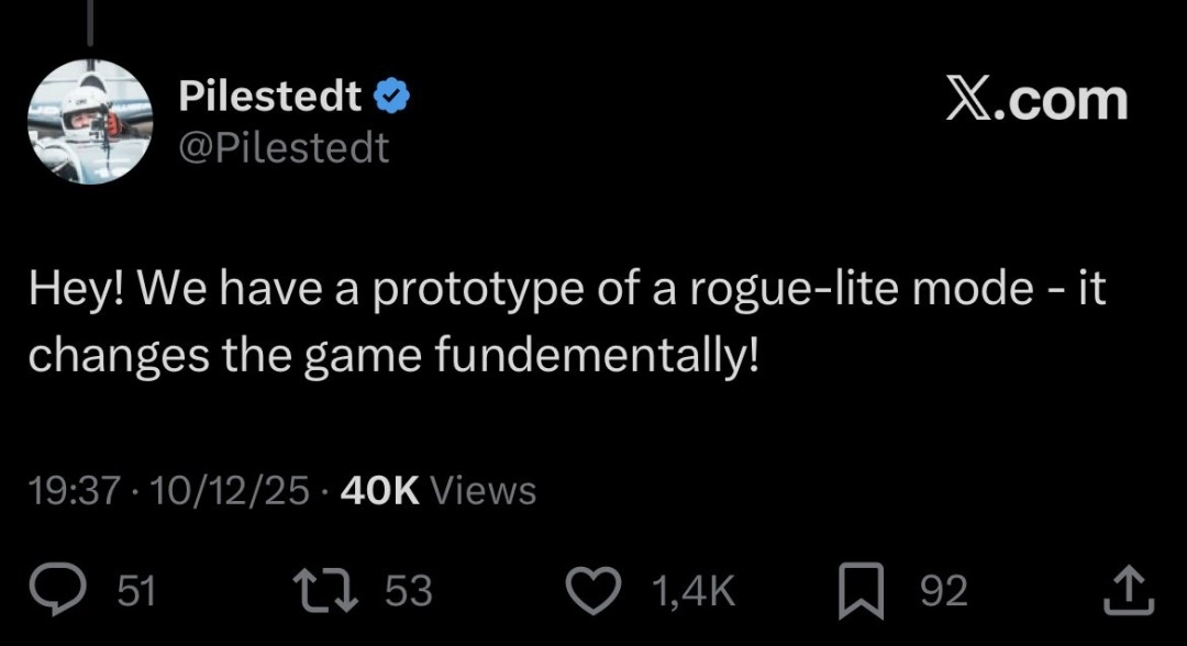 在社交媒体上回应粉丝关于roguelike/无尽模式的提问时,Johan给出了这样的答复。这一消息同样显示,箭头工作室依旧在致力于为《绝地潜兵2》打造独特的游戏机制。