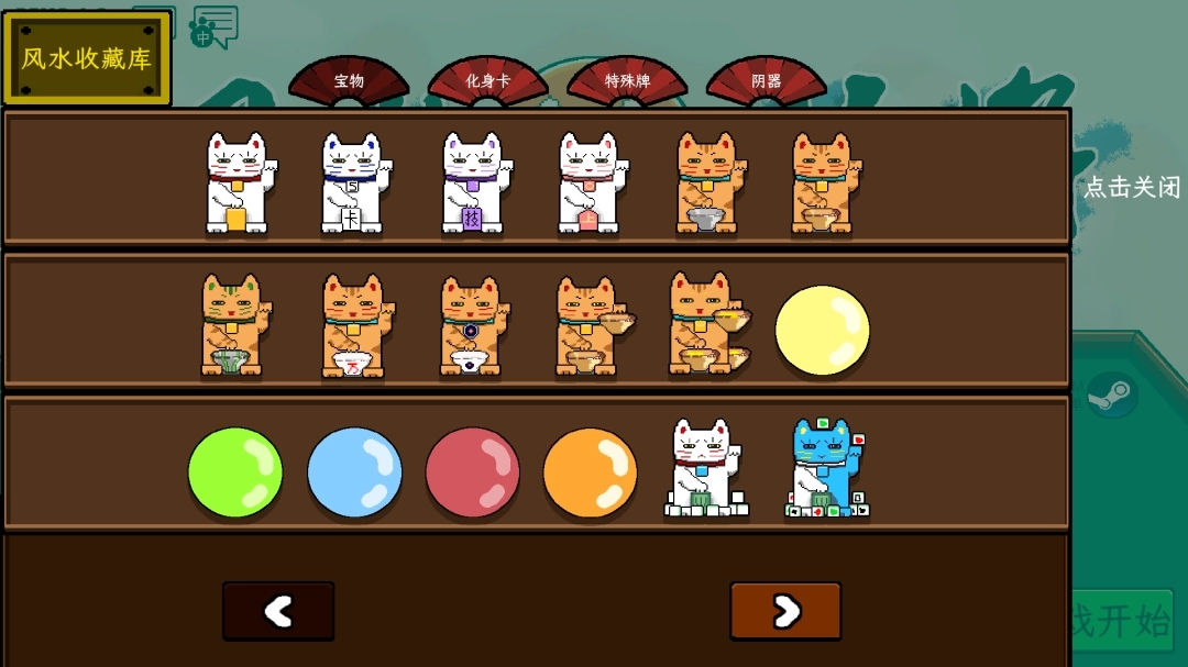 游戏融入可爱又搞怪的猫咪与风水元素,玩家需要将宝物摆放在对应的风水位置以触发额外加成。宝物拥有不同定位与技能,可根据构筑方向进行选择,从而进一步放大增益,实际爽感“翻一翻”。