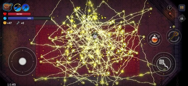 手游版完整的保留了PC端的核心玩法与叙事框架,玩家将扮演误入异界的勇者,通过拔出传说法杖开启对抗古神的旅程。《魔法工艺》的核心魅力在于其“魔法编程”系统,在手游版中,玩家依旧可以使用超过100种法术符文自由组合,例如分裂、旋转、弹射、穿透等基础能力,还有诸如悬停、追踪目标、触发连携等前置效果,在将这些机制彼此叠加后,创造出如“追踪+弹射+分裂”等创意无限的复合型法术。