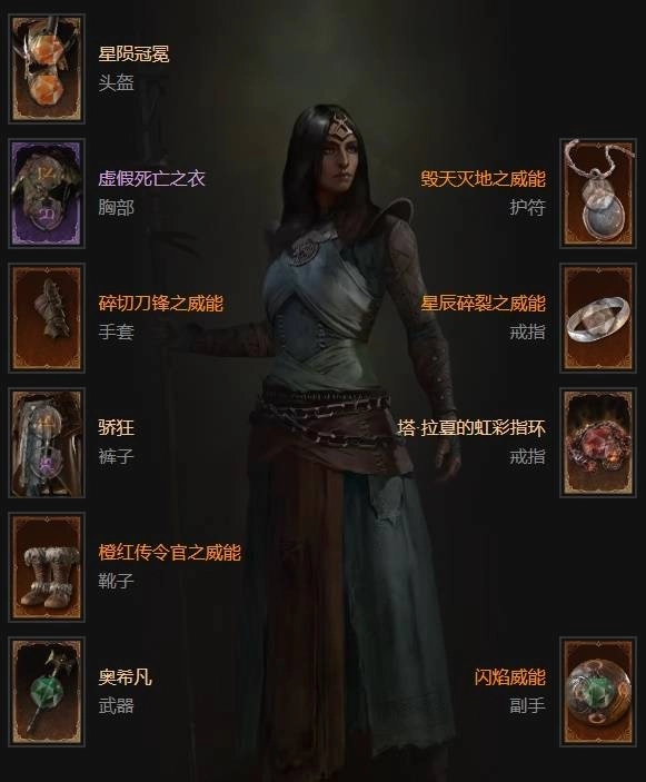 鞋子必须携带【橙红传令官之威能】,用于维持终极技能循环,是当前构筑核心