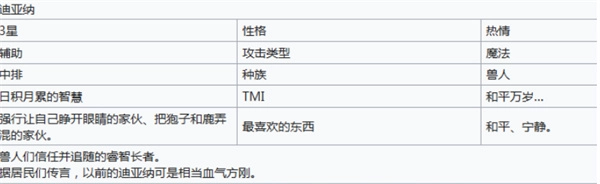 迪亚纳为三星辅助使徒,兽人种族,站位在中排。