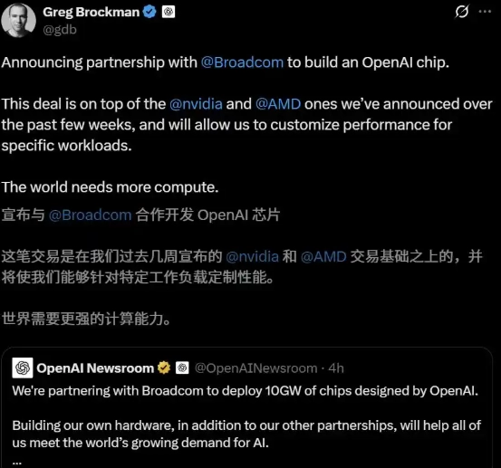 博通与OpenAI于周一表示,基于双方现有的联合开发与供应协议,新定制芯片的部署工作将于2029年底前完成。