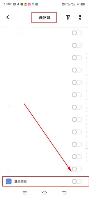 1、当你初次进入该软件时,可能会自动跳出一个权限请求界面,要求你授予"悬浮窗"权限。你需要找到并勾选同意"准星精灵"所需的权限。