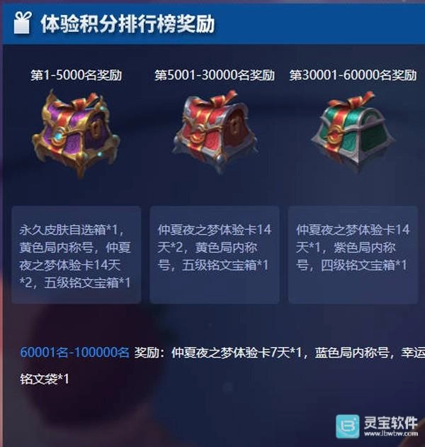 温馨提示:体验积分高的还可以获得免费称号以及永久皮肤自选宝箱哦