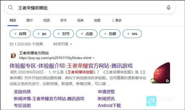 1、咱们先通过浏览器搜索王者荣耀前瞻版进入体验服官网