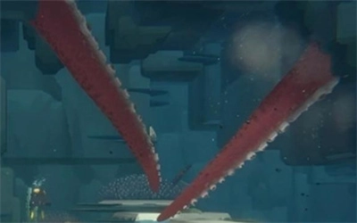 2、阶段二:触手位置前移,烟一冒立刻向后(左侧)游,躲在石头后面等触手缩回。