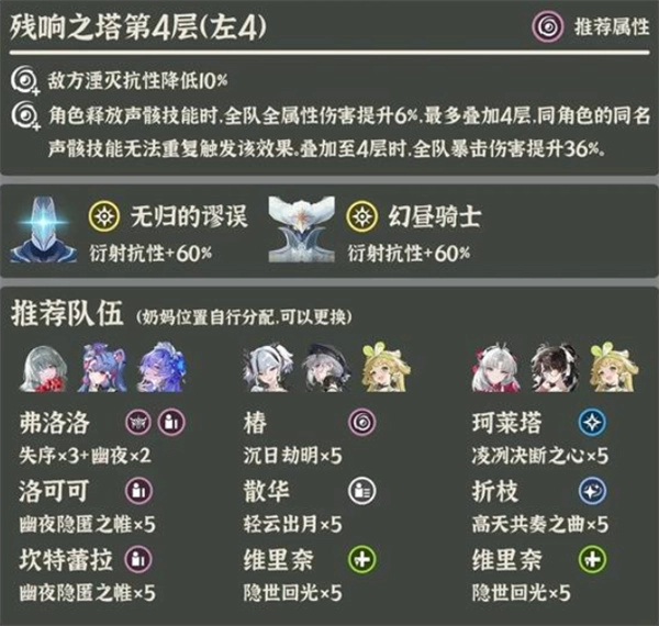本期湮灭体系在中塔表现一般,因此建议将湮灭队分配到左右塔层使用,提高整体通关效率。