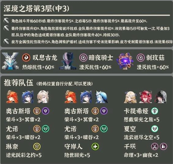 阵容选择上不一定强制使用日月队,日月更适合留给中塔使用。本层弗坎队或热熔体系都能稳定通关,关键是保证护盾覆盖率。