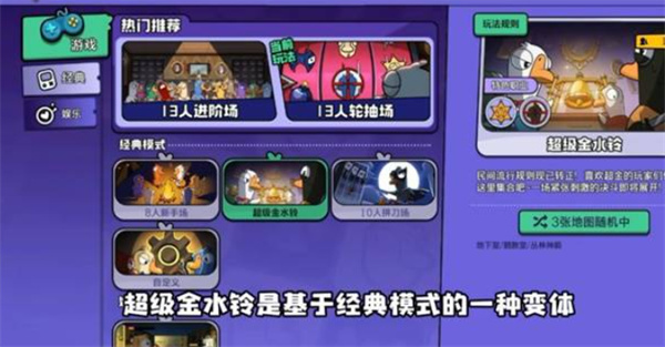 在《鹅鸭杀手游》里,超级金水铃模式属于经典模式的衍生版本,其玩法规则进行了相应调整,更侧重于策略规划与快速判断。熟练运用会议和决斗机制是游戏顺利推进的核心要点。接下来,小编就为大家详细解读鹅鸭杀手游的超级金水铃模式,期望能给各位玩家提供帮助。