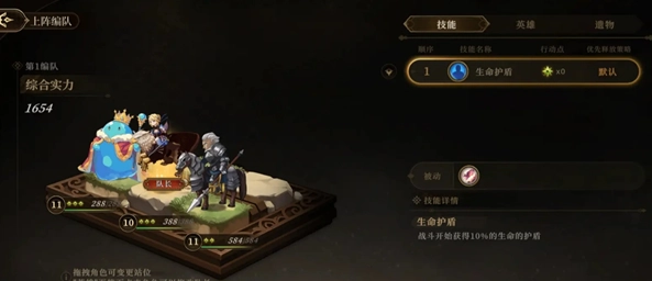 2、技能配置:自带“生命护盾”技能,无需升级任何技能,仅靠基础护盾效果即可辅助抗伤。