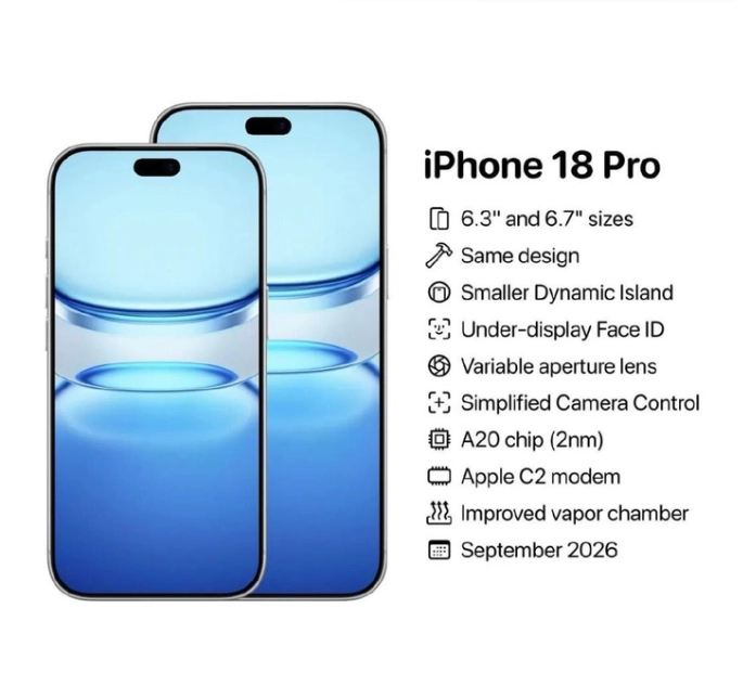根据外媒的总结,iPhone 18 Pro 目前已知有六大升级,在相机、芯片和显示等方面都有新料