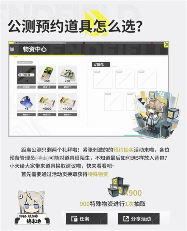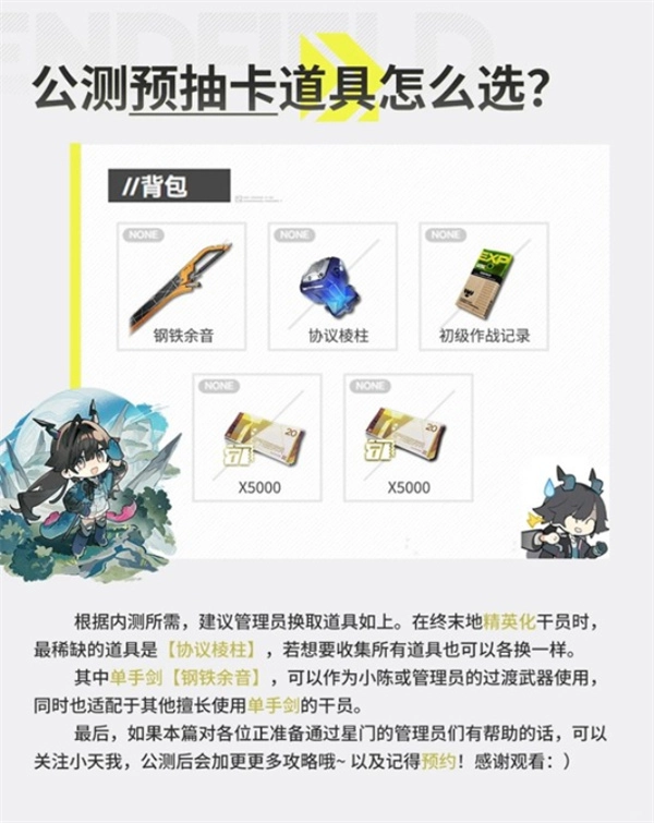 《明日方舟:终末地》很快就要开启公测啦,预抽卡活动能让管理员有机会获取高级干员和武器。要是能合理挑选道具,就能助力开局时顺利开展工业建设和干员培养。我整理了一份明日方舟终末地预抽卡的道具选择建议,希望可以帮到大家。
