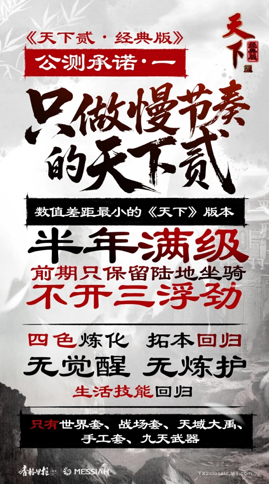 对于见惯了喧嚣的天下玩家而言,真正的诚意从不在于口头承诺,而在于游戏本身。正因如此,《天下贰·经典版》在正式启程前,便率先亮明了它的三大核心承诺。这不仅是一份给所有玩家的保障,更是对那个值得沉浸与探索的纯粹大荒,最深情的回归宣言。