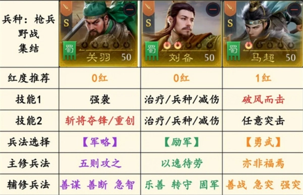 阵容最低成型条件为马超1红即可投入使用,整体武将获取门槛较低,新手玩家也能较快凑齐。