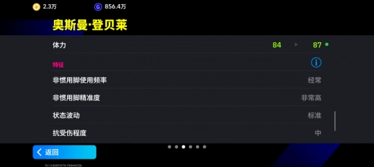 92分的射门数值以及无逆足的属性