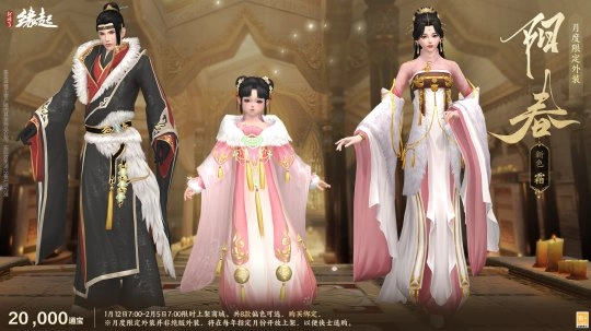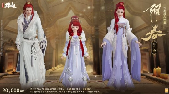 月度限定外观售价20,000通宝,共有8款偏色可选,购买后绑定。