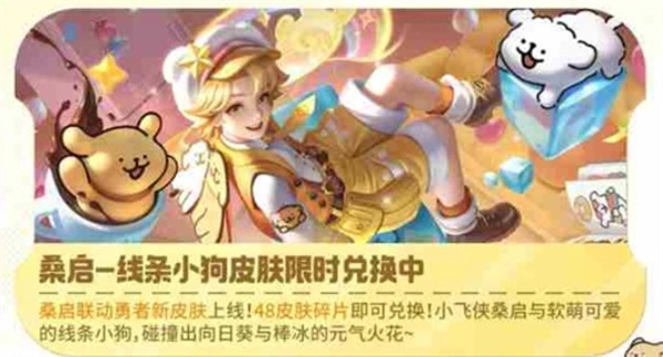 桑启的线条小狗皮肤现已限时上架皮肤碎片商店,玩家可消耗48个皮肤碎片进行兑换,该皮肤的兑换有效期为4周。