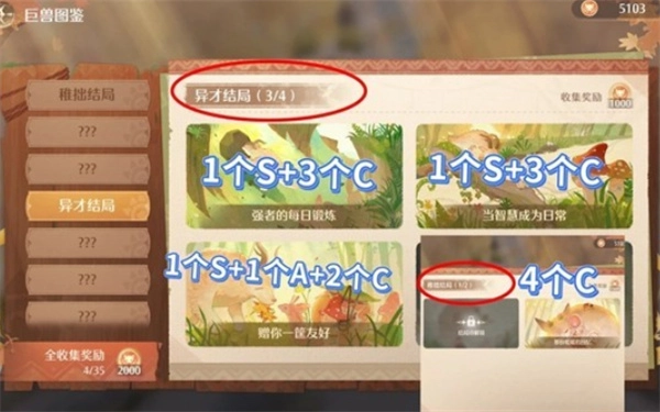 达成4种结局,至少养成4只巨兽