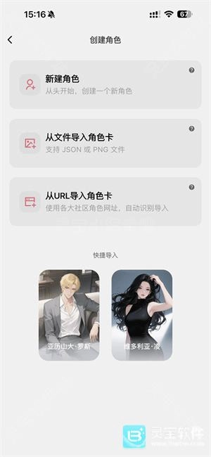 5、这时可以在此页面选择创建新角色或选择导入角色的方式