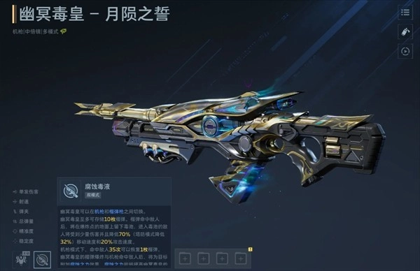 举例:例如幽冥毒皇,可以在机枪与榴弹枪之间切换,既可以高速射击,也可以发射大范围的榴弹;飓风之龙也可以在霰弹枪与炎龙弹两种模式之间切换,也是多模式机制。