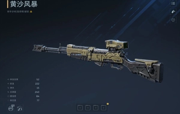 在主界面点击“武器”选项后,于武器名称下方就能看到该枪械对应的枪械类型、倍镜类型以及伤害机制。