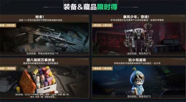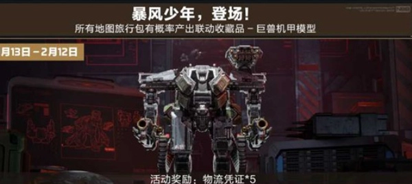 1月16日至2月12日,游戏内所有地图的“旅行包”均有概率掉落联动金色收藏品 “巨兽机甲模型”。该藏品可上架交易行流通,是本轮活动的核心收集内容之一。