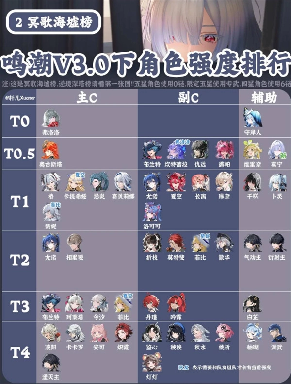 综合评价:辅助角色全面,当前榜单为T0(逆境深塔)、T0.5(冥歌海墟),后续偏谐体系扩充后预计会上调