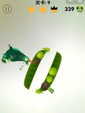 2、然后豌豆荚会转动,豆子的位置也会跟着变动,掌握好时机,将连在一起的青豆啄掉。