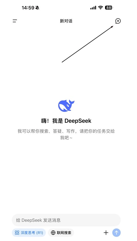 在当前对话界面点击右上角的“+”号创建新会话,重新发起对话。