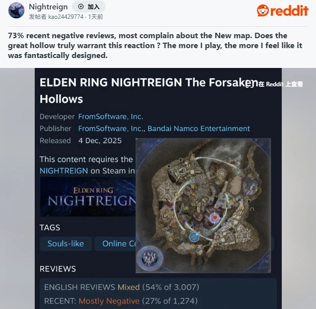 在《黑夜君临》的Reddit版块,有一位名叫Kao24429774的玩家指出,这款游戏在Steam上的评价不太好,并询问这款DLC “真的值得这样的评价吗?” 结果发现,很多人都认为确实如此,即使是那些不介意这款DLC的人也承认,他们需要时间才能接受它,而且他们仍然更喜欢主地图。
