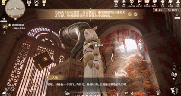 7、到达三层后,会播放动画,继续使用机关操作让巨兽解锁围栏(重复三次)。