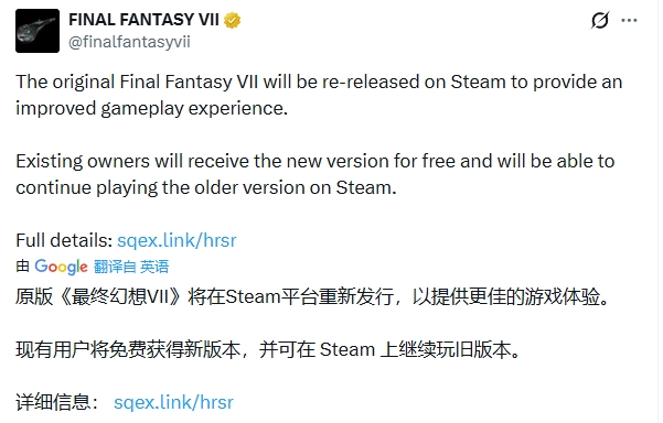 官方方面已确认,在Steam平台上已经拥有原版《最终幻想7》的用户,能够免费获赠这一新版游戏。对于已经拥有该游戏的玩家而言,原先的版本会以“《最终幻想7》– 2013版”的名称保留在游戏库中,并且可以继续进行游玩。然而,从新版游戏发布的那一天起,“2013版”将不再对新用户进行销售。官方还特别说明,这两个版本之间的游戏存档是不能够相互兼容的。