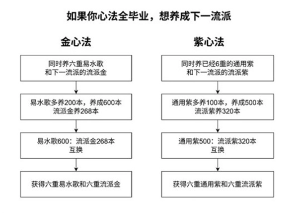 心法转换可在通用与流派之间进行,合理利用比例能提高资源利用率。