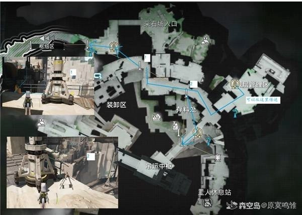 本路线主要围绕四号谷地的电力传输线路展开梳理,着重呈现关键供电节点的位置分布情况。在拉线作业过程中,需用到以下设施: