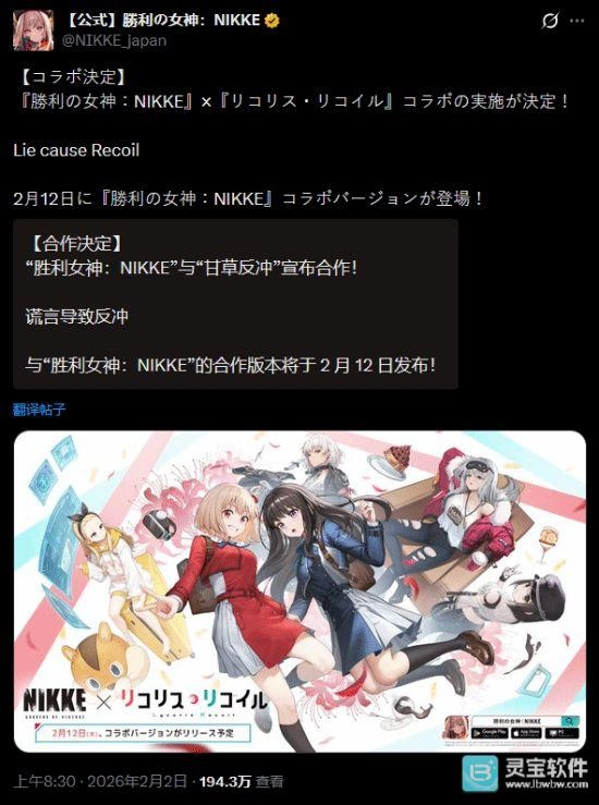 胜利女神妮姬是韩国SHIFT UP公司开发的作品,适配iOS、Android与PC平台。官方此前已在社交媒体预告将有全新神秘联动,今日这一联动的具体信息正式公布,合作对象为2022年播出并引发热度的美少女JK特种兵题材动画《Lycoris Recoil》。